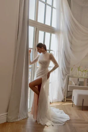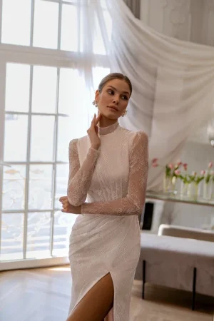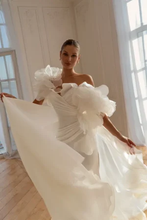 ДеталиБез корсета, На бретельках, С разрезом, Со шлейфом